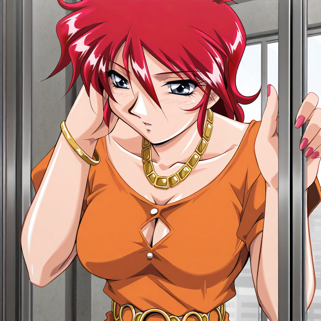 rei_kayama, red hair, blue eyes,
