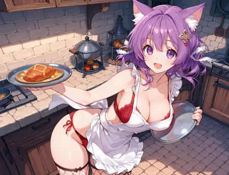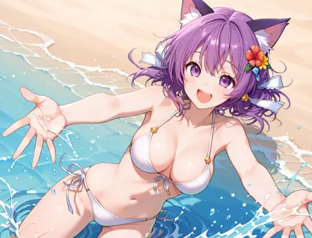 기본: Bashira_Aigis, 보라색 머리카락, 보라색 눈, 고양이 귀,