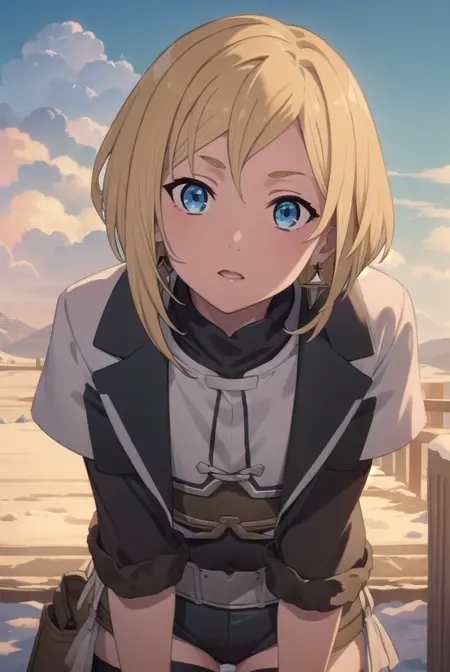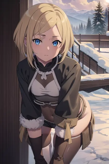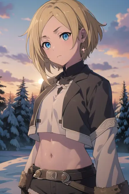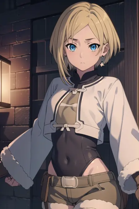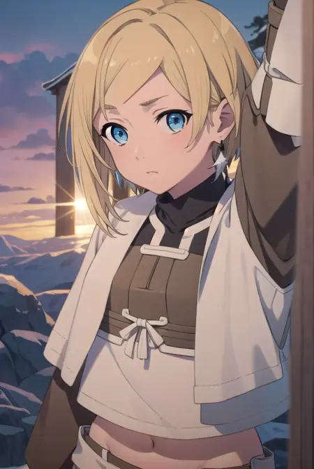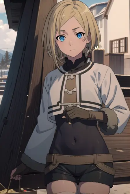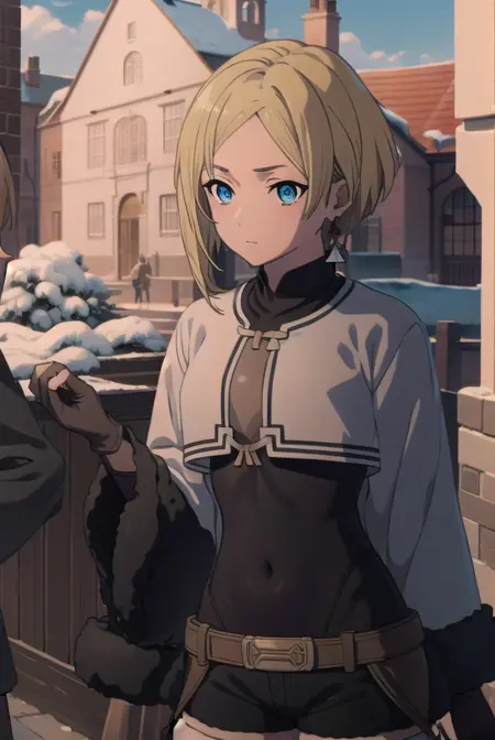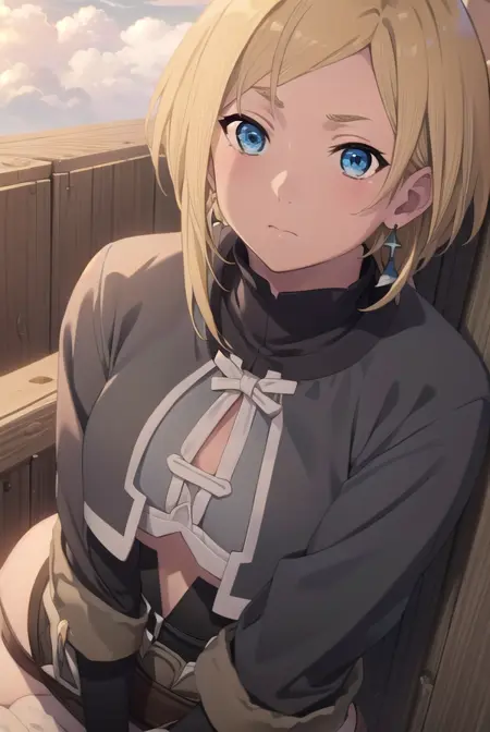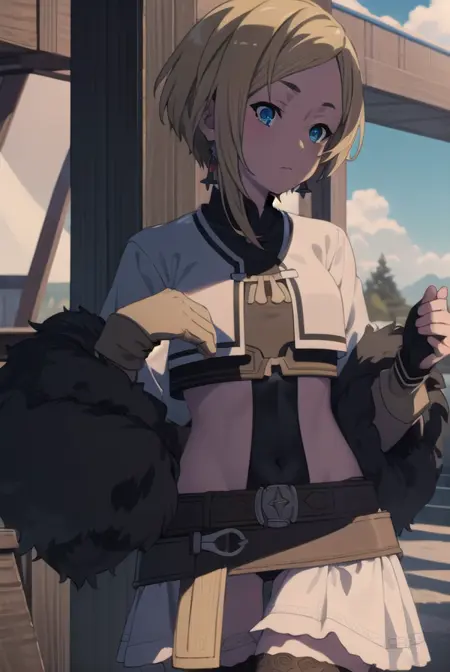 mushoku tensei sara, short hair, blue eyes, blonde hair,