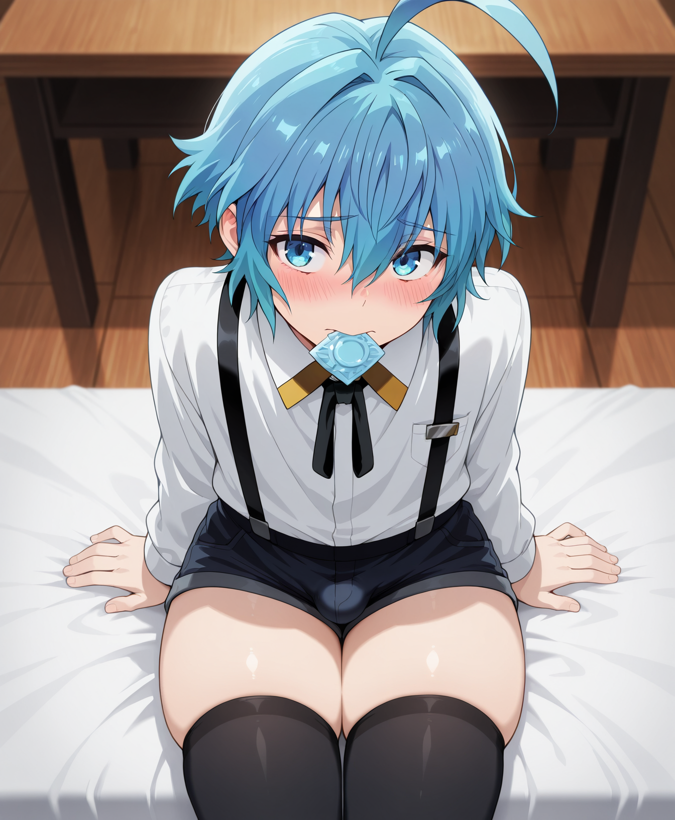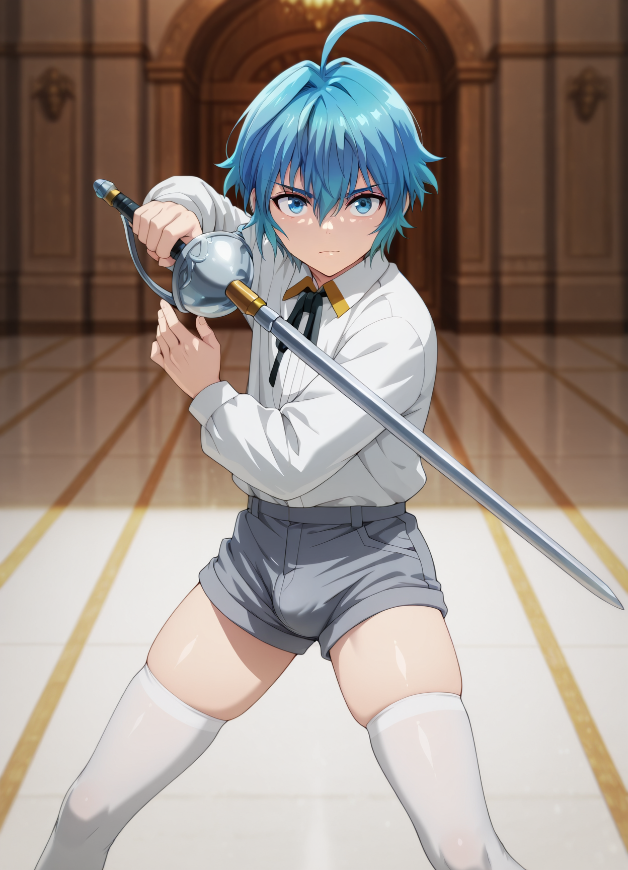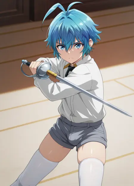 And: suspenders,school uniform,shorts,thigh high,sword,rapier,tracksuit**,**denim overalls,apron,sword,rapier,