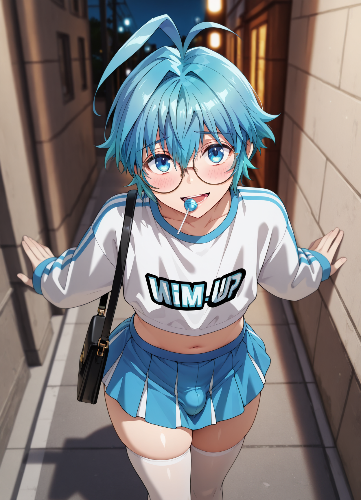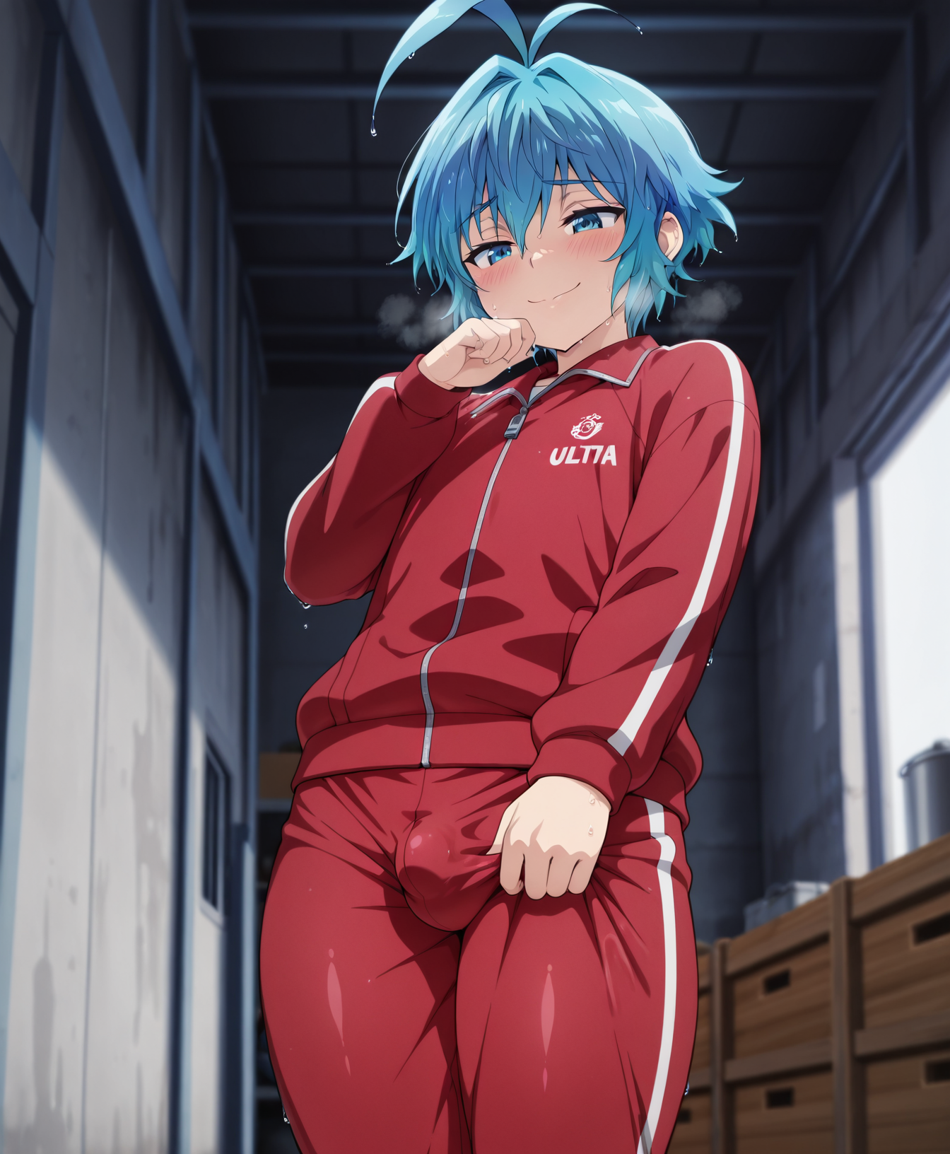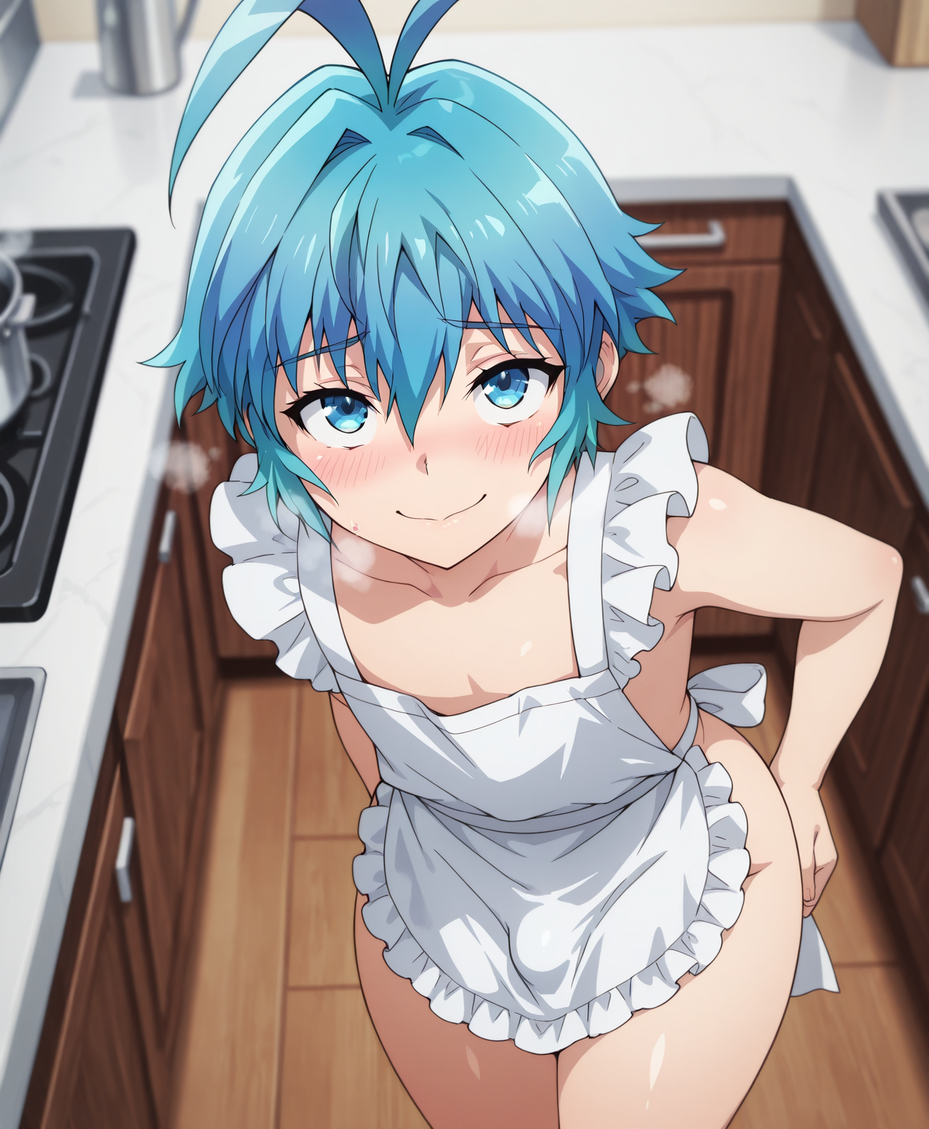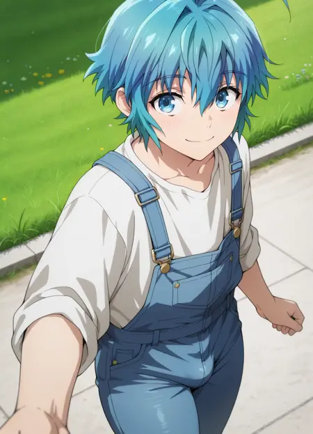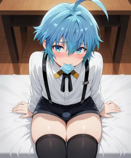Triggers are: Pram, blue eyes, blue hair, ahoge, hair between eyes,short hair,