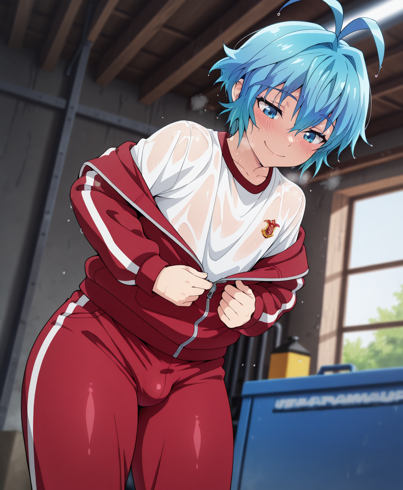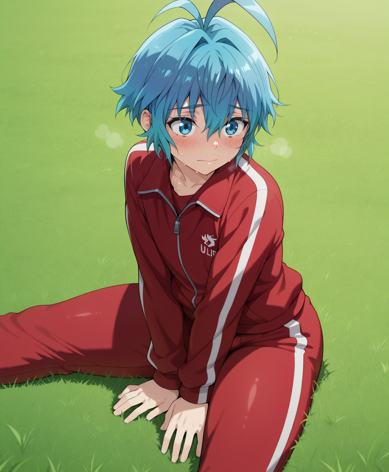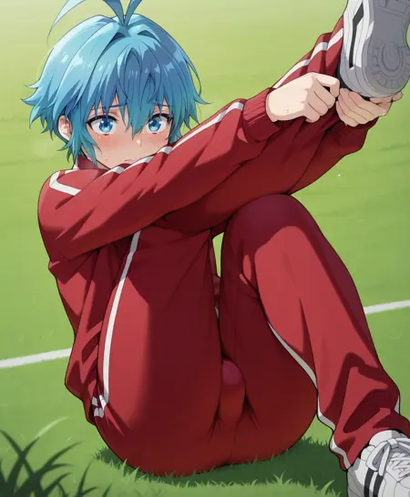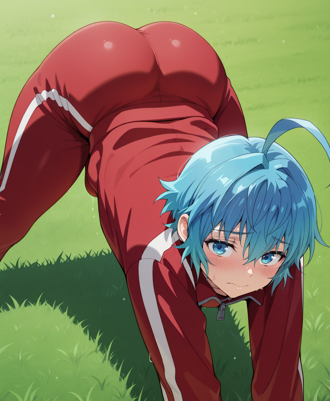 Triggers are: Pram, blue eyes, blue hair, ahoge, hair between eyes,short hair,