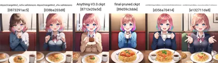 Things like "food, simple background, elbows on table, cup, blurry background, indoors, upper body," and other related prompt terms may help in generation results.