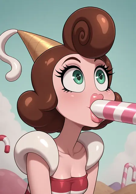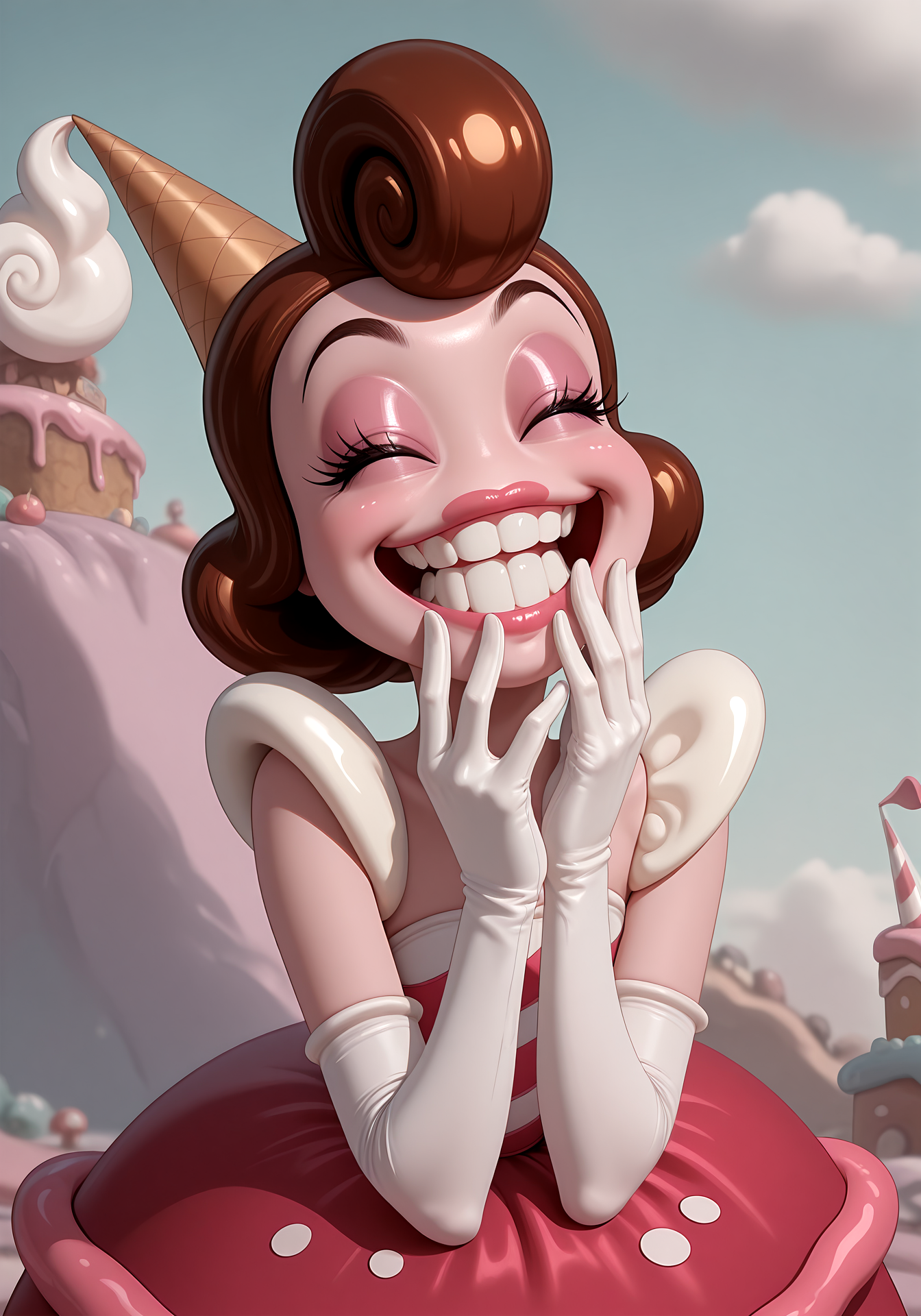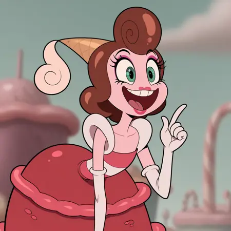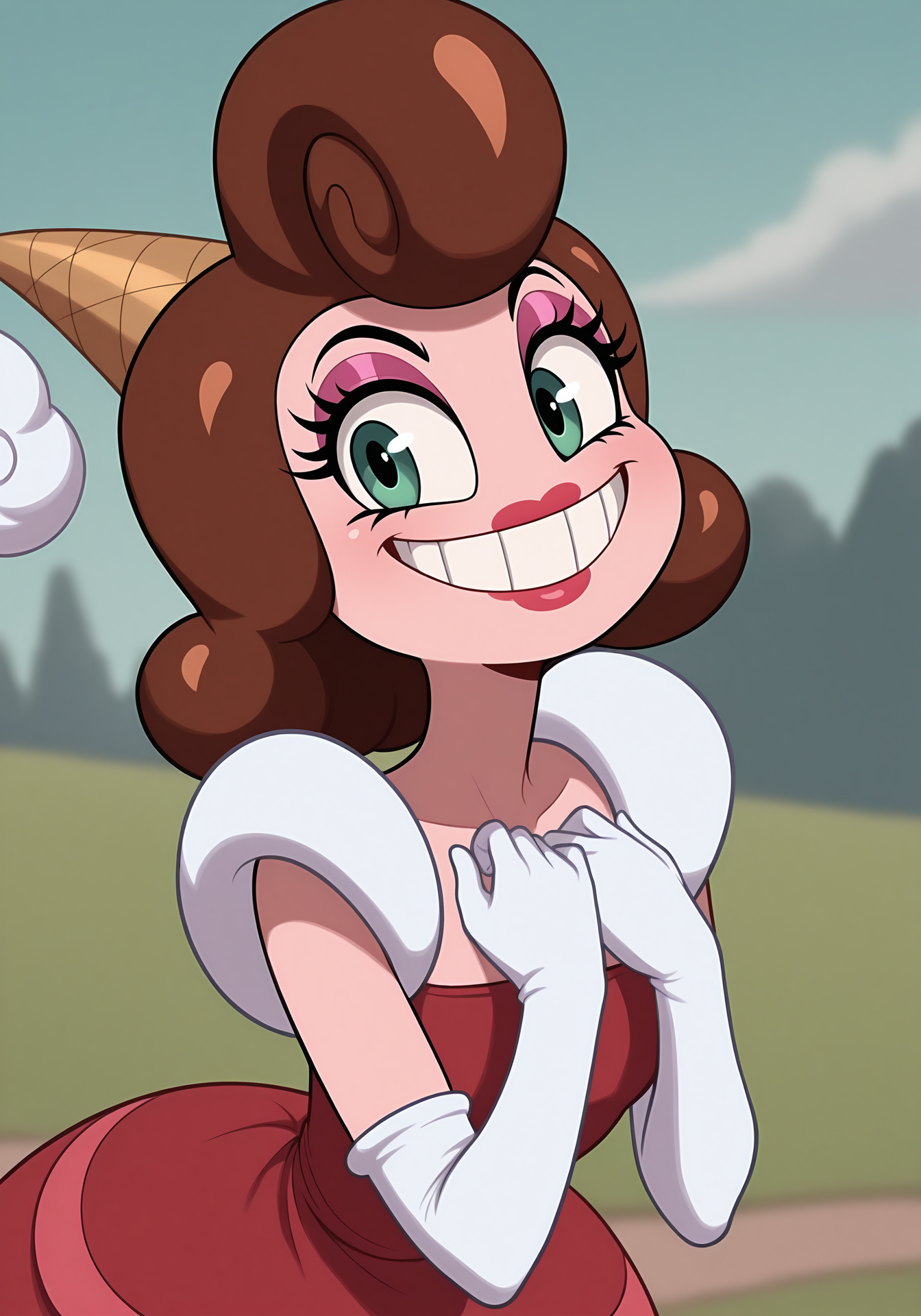 来自《杯户先生》的邦邦女爵。训练数据包含游戏版本、动画版本以及一些精确的粉丝艺术作品,对此结果非常满意。