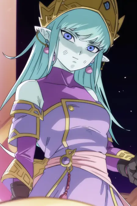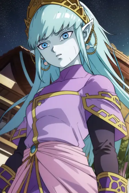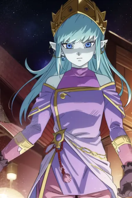 aeos formtwo, 긴 머리, 장갑, 보석, 파란 머리, 귀걸이, 뾰족한 귀, 바지, 아쿠아 머리, (색깔 있는 피부:1.5), 넉넉한 바지, 드레스, (보라색 드레스:1.5), 레오타드, (분홍 레오타드:1.5),