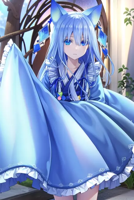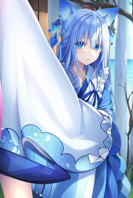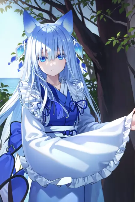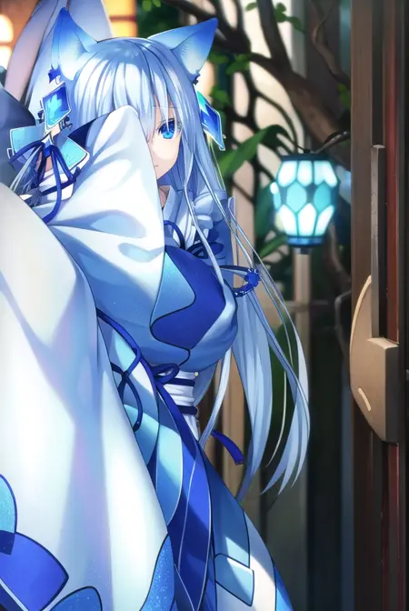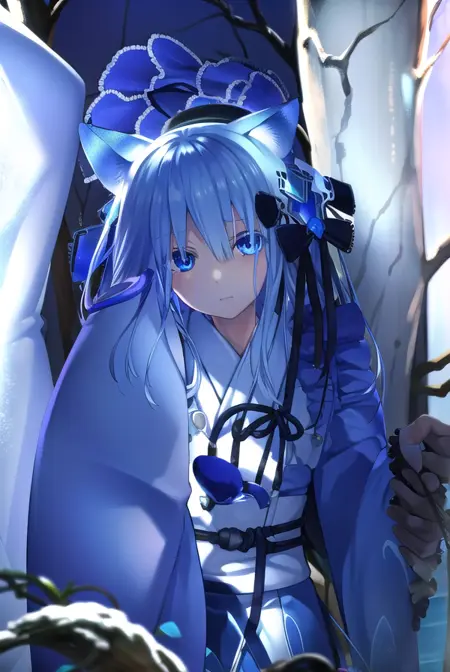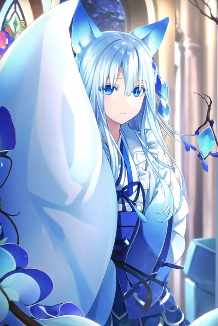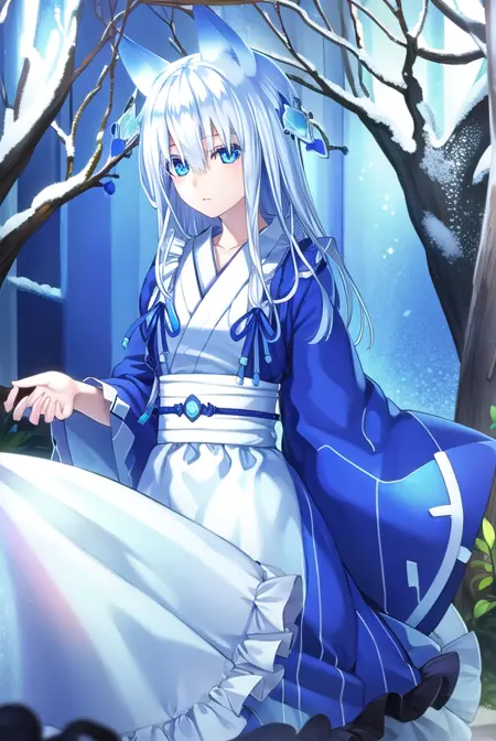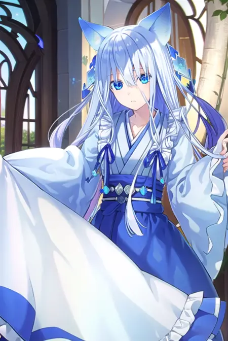 fffkarin, 长发, 蓝眼, 头饰, 动物耳朵, 白发, 狐耳,