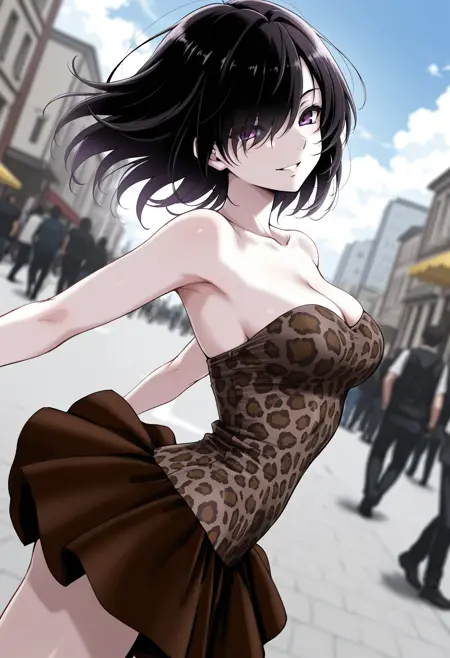 microleopard34234dress, short dress, puffy skirt, strapless dress, sleeveless dress, leopard print dress, two color dress,