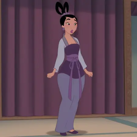 标签:长黑发,亚洲人,杏眼,发髻,传统中式服装,紫色腰带,长袖,紫色发饰,紫色裙子,薰衣草色汉服,黑眼睛,口红,腰带