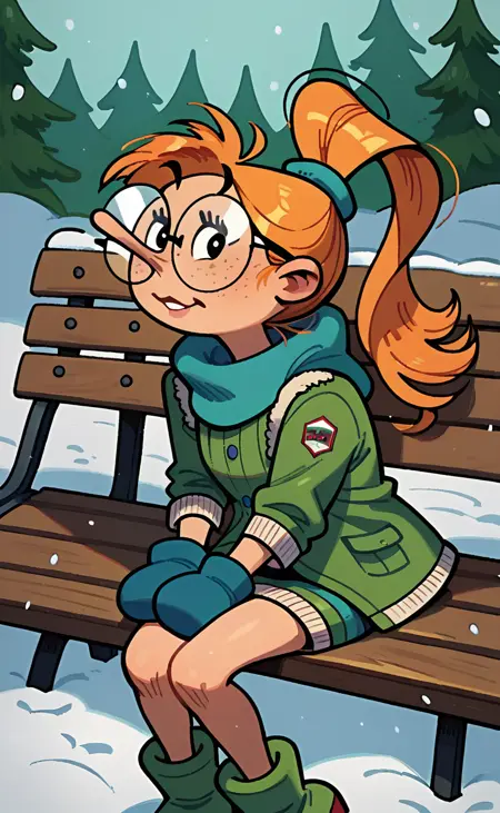 glasses, ponytail, long hair, freckles,long nose,orange hair