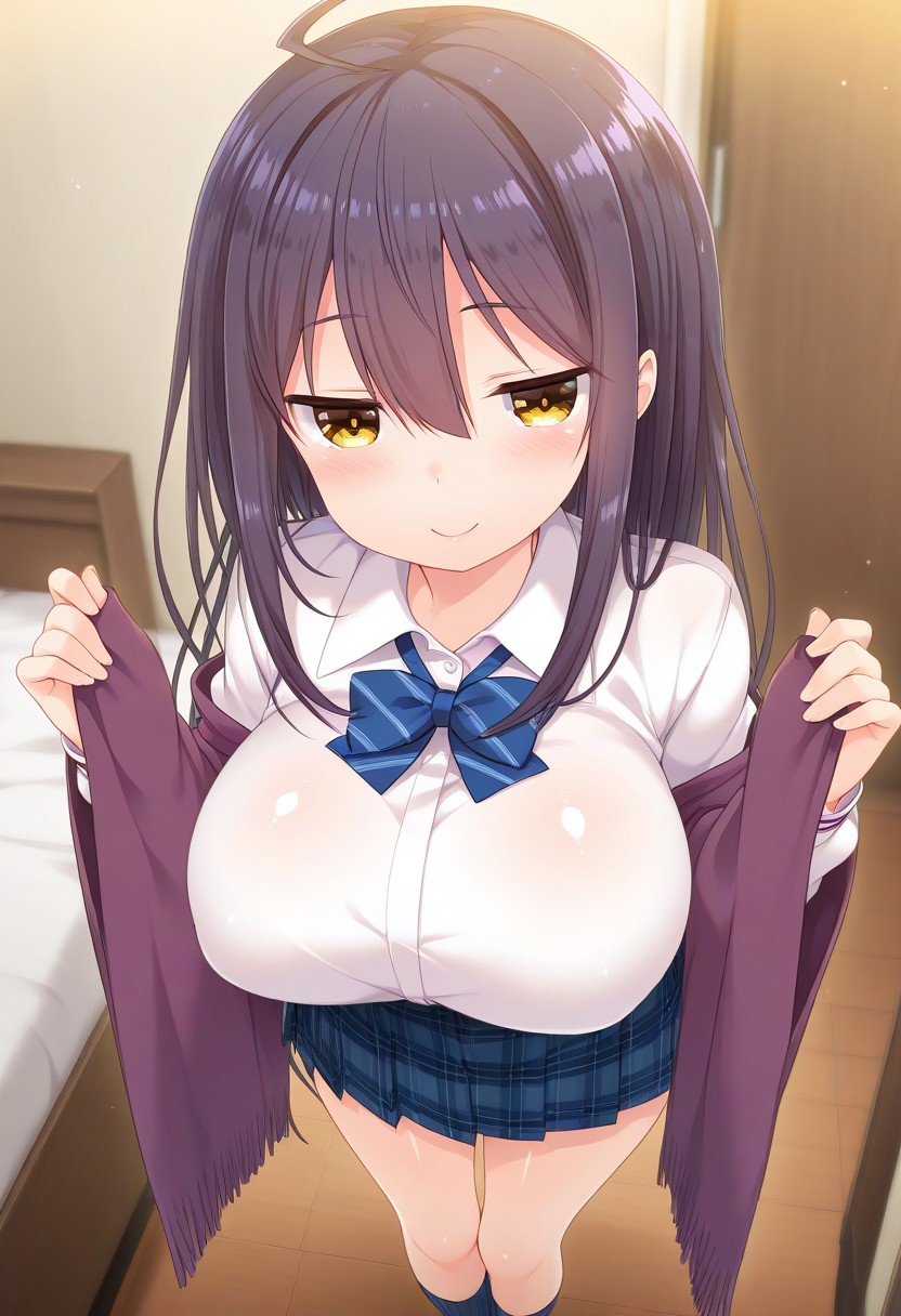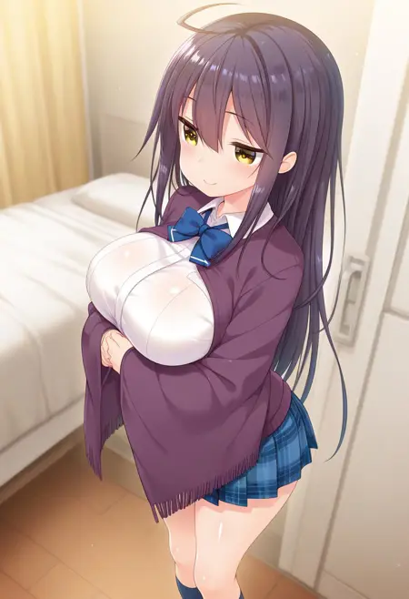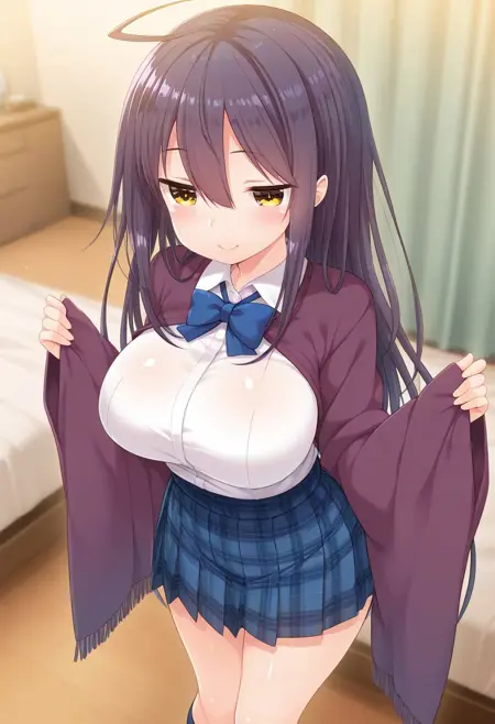 Recommend Prompt:Shion Suwa, yellow eyes, black hair, long hair, ahoge, long sidelocks,