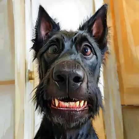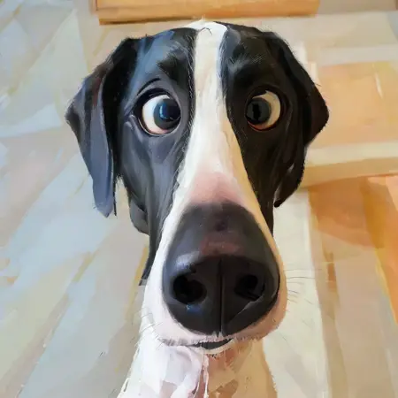 Typical quick sketching style, whiskers and hair sticking out in all directions, huge expressive eyes and big dog noses.