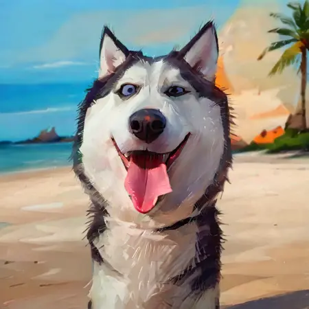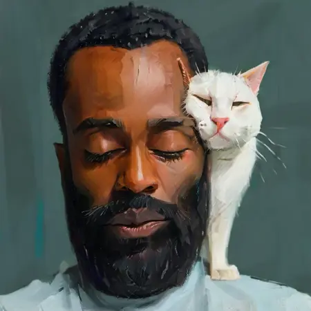 His digital paintings made in a expressionist style with broad thin strokes and triangular brushes, drawn hairs and distinctive delicate features. Backgrounds and secondary objects tend to be very sketchy, simplified or blurred.