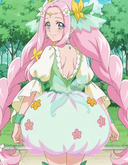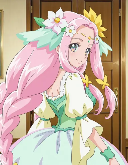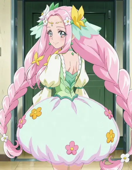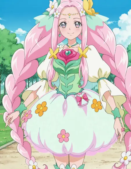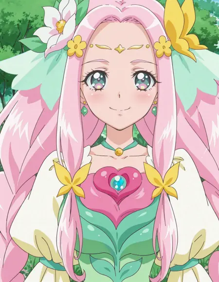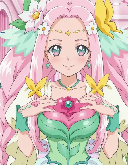 アニメスクリーンキャップ、シングル、1girl、キュアフェリース、フェリースコスチューム、lora:curefelice_IL:0.8 高解像度、素晴らしいクオリティ、最良のクオリティ、非常に美的、マスターピース、absurdres、