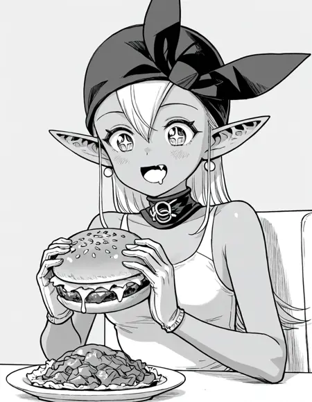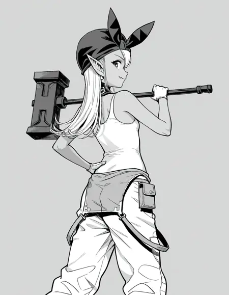 来自《被遗弃的:太强了以至于武器会坏掉的勇者与武器工匠的精灵》中 Carrie 的角色 LoRA。他们称她为暗精灵,但精灵和矮人的混血难道不应该是“Drewlf”吗?此外,这部漫画的剧情与《死侍3》如出一辙,现在你注意到了,它永远被毁了——你可以感谢我。