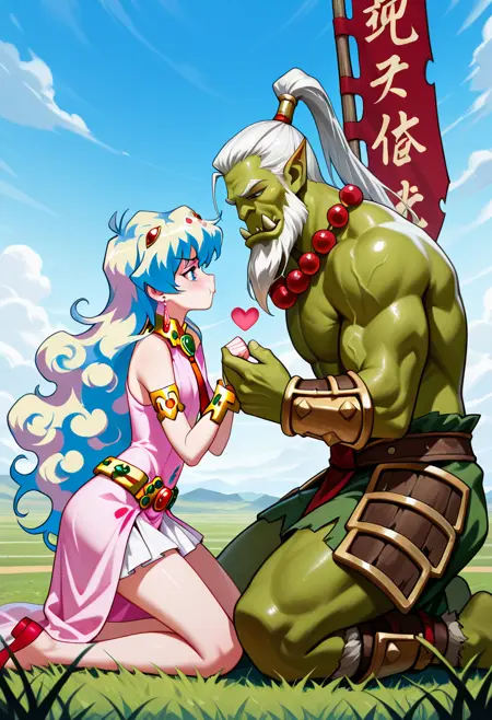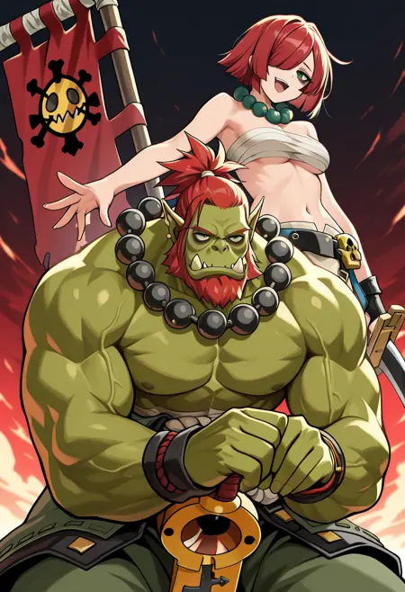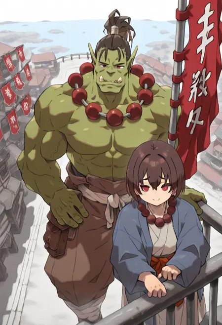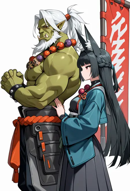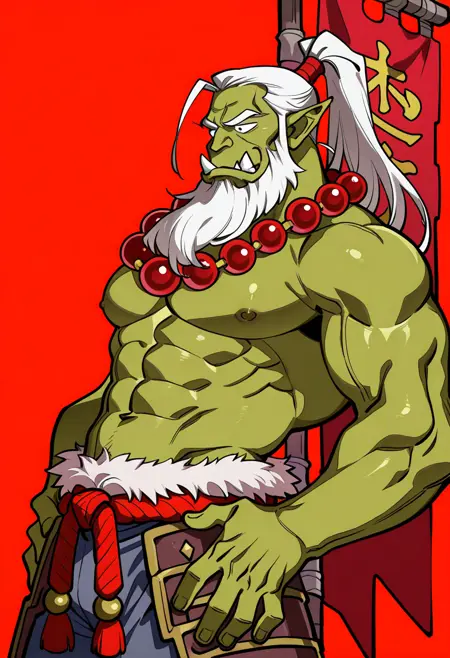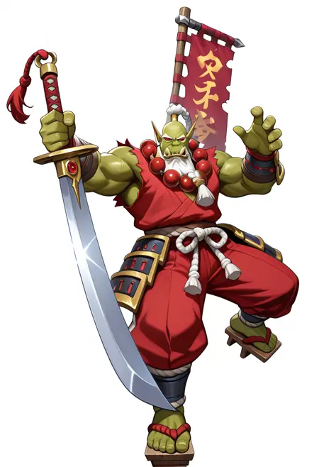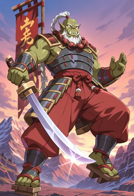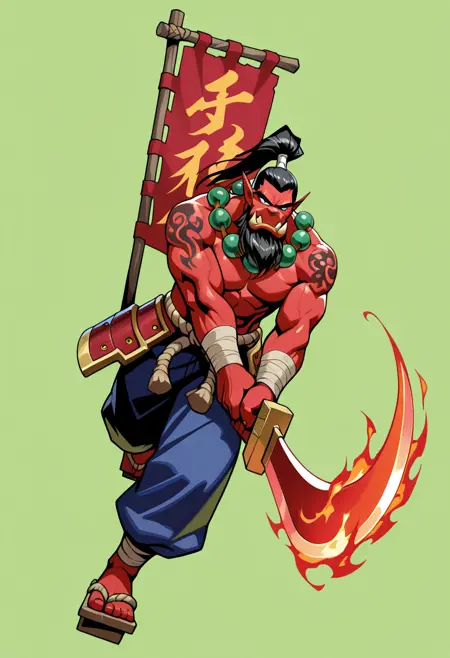 1. Lora is more tied to the "orc" tag, the "samuro" tag plays a supporting role. I can't even say what exactly it is responsible for, maybe the pose, teeth or small details. The orc tag also gives a green color, and helps the base model display Samuro, but often replaces the character model with the default orc.
