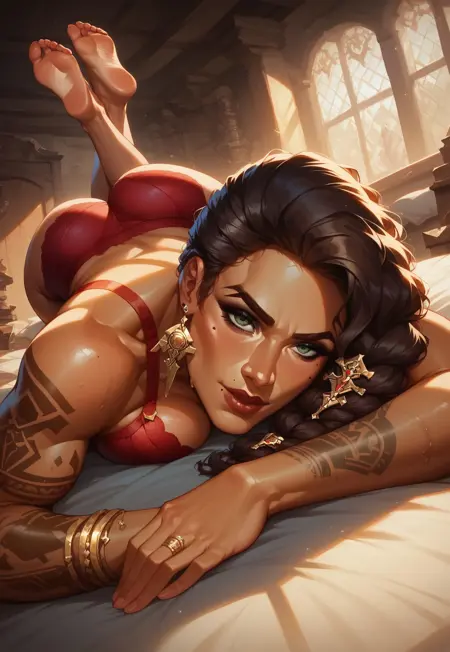 このモデルは、『リーグ・オブ・レジェンド』の世界観に登場するサミラを描いています。