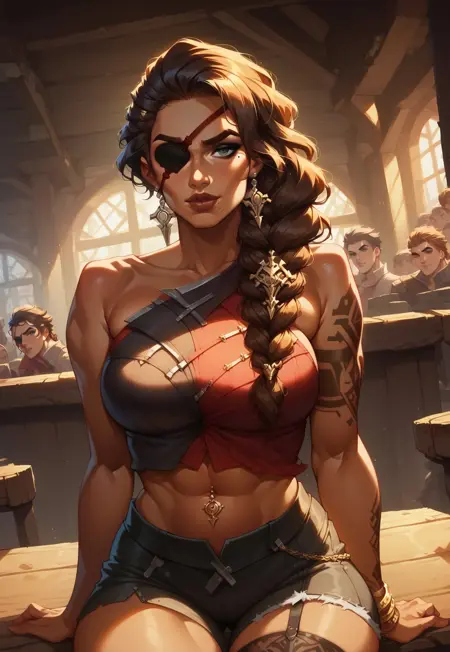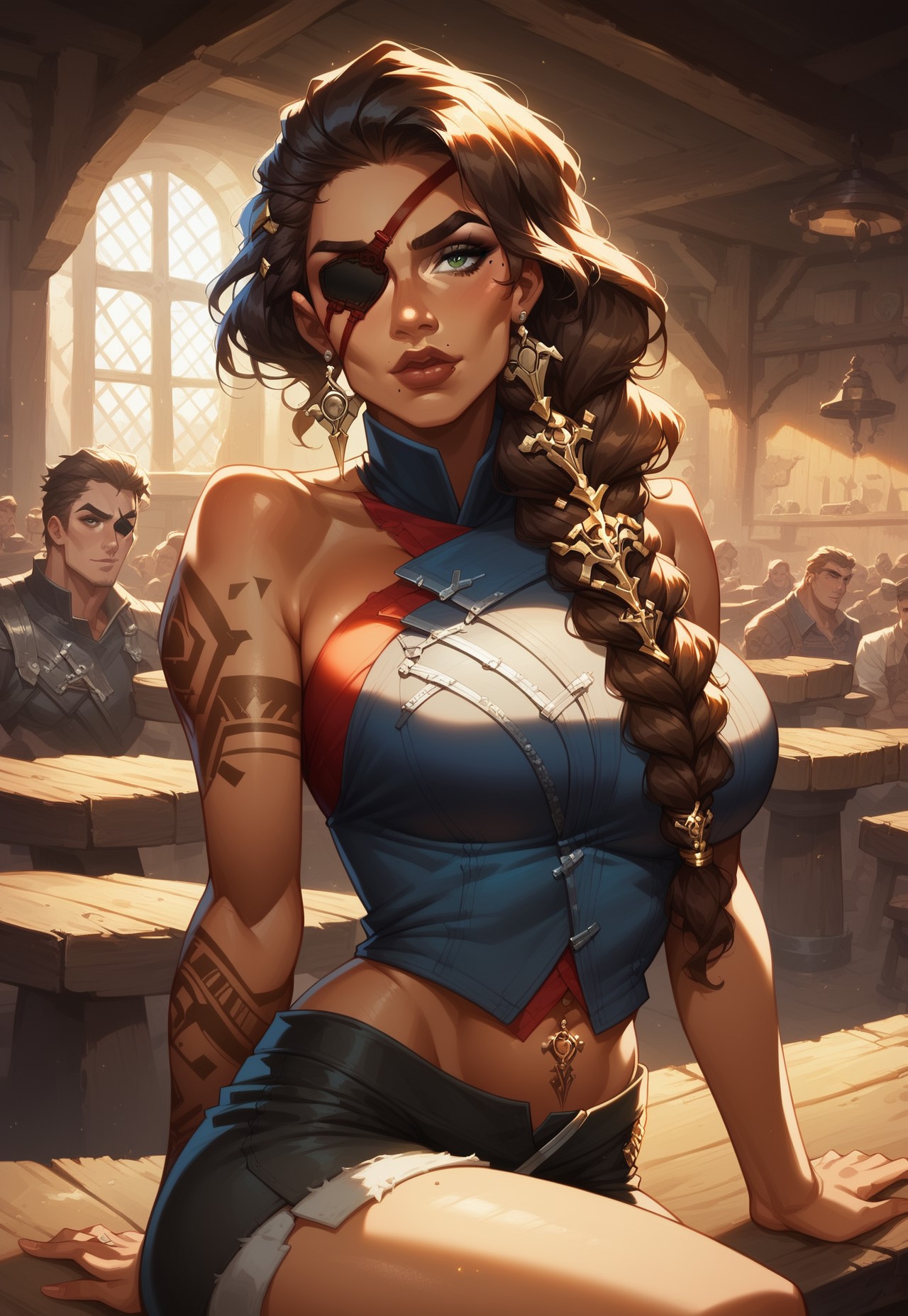 外見キーワード: 目パッチ、タトゥー、编み込み、ほくろ