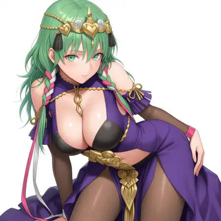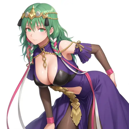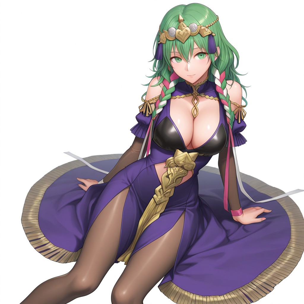 BylethBrave, Green Hair, Braids, Ribbon Braids, Twin Braids, Long Hair, Tiara, Hair Ornament, Ribbon, Dress, Cleavage, Pantyhose, Large Breasts,