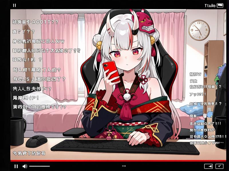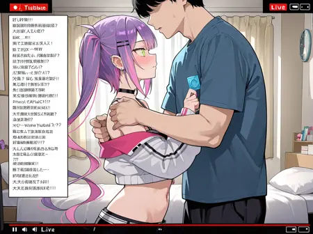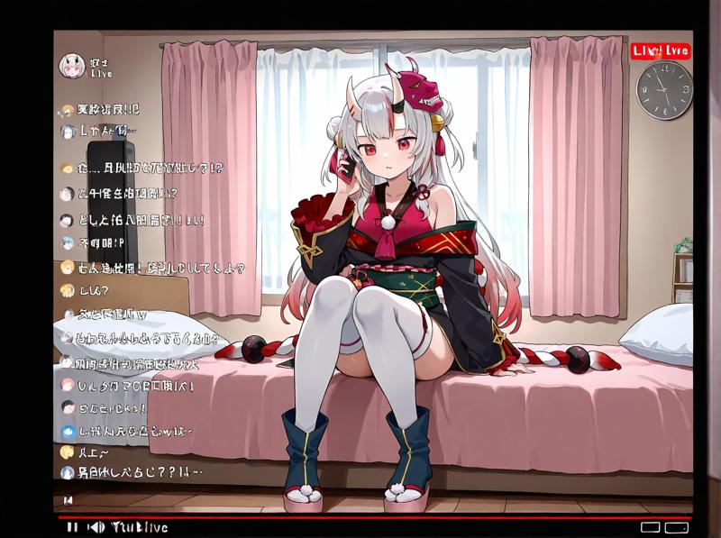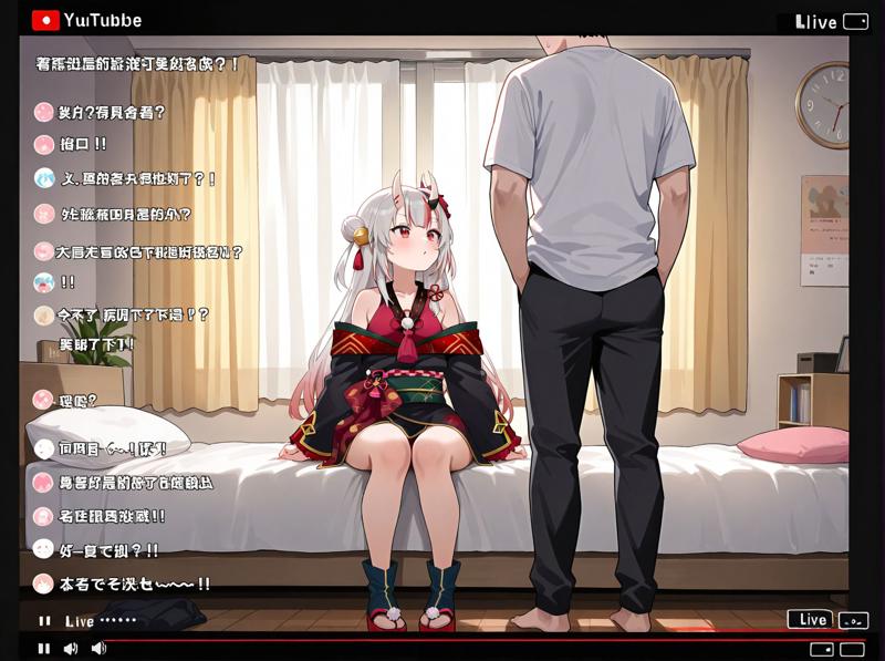 時計、カーテン、(スーパーチャット、コメント、YouTubeユーザーインターフェース、ライブ配信)、精液の飛沫、