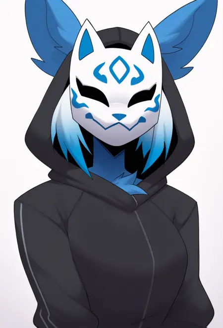 Character Tags: furry female, blue skin, animal ears, white hair, blue hair, gradient hair, short hair, sidelocks, ponytail, blue eyes, animal nose, tail