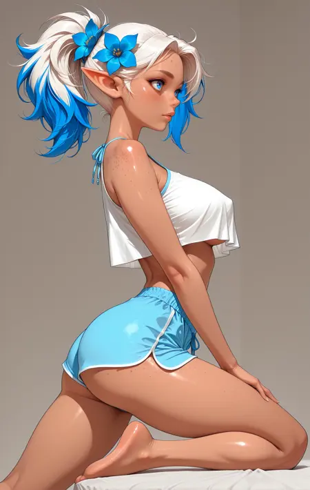 Sephira의 존재감은 매혹적이다. 그녀의 긴 흰 머리카락은 끝부분에서 반짝이는 은청색으로 변하며, 마법의 비단으로 엮여 있다. 귀 뒤에는 사파이어 꽃이 자리 잡고 있는데, 이는 자연과 개인적 성장에 대한 그녀의 연결을 상징한다. 그녀의 피부는 햇볕에 타고 점이 박혀 있으며, 눈은 날카로운 보라색으로 움직일 때 마치 빛나는 듯하다. 그녀는 가볍고 기능적인 복장에 미묘한 엘프 문양을 새겨, 민첩성을 강화한다.