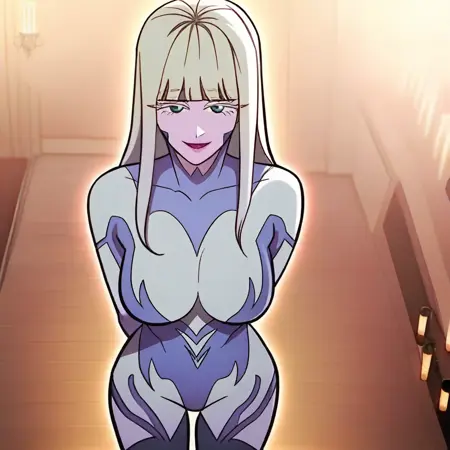 (( lora:sheidria\_m1c8:1 , sheidria_m1c8, 美丽的绿色眼睛,清澈的眼睛,明亮的瞳孔,美丽的眼睛,金色秀发,又长又美的头发,巨大而蓬松的胸部,纤细的腰,宽大的臀部,美丽的肌肤,天然美,超美丽的女性,有吸引力的女性,超级性感的女性,欲望的身体,性感且充满诱惑的淫秽身材,性感的身材,丰满的身材,性感美,高挑女性,性感未来主义白色和蓝色全身紧身衣, ))