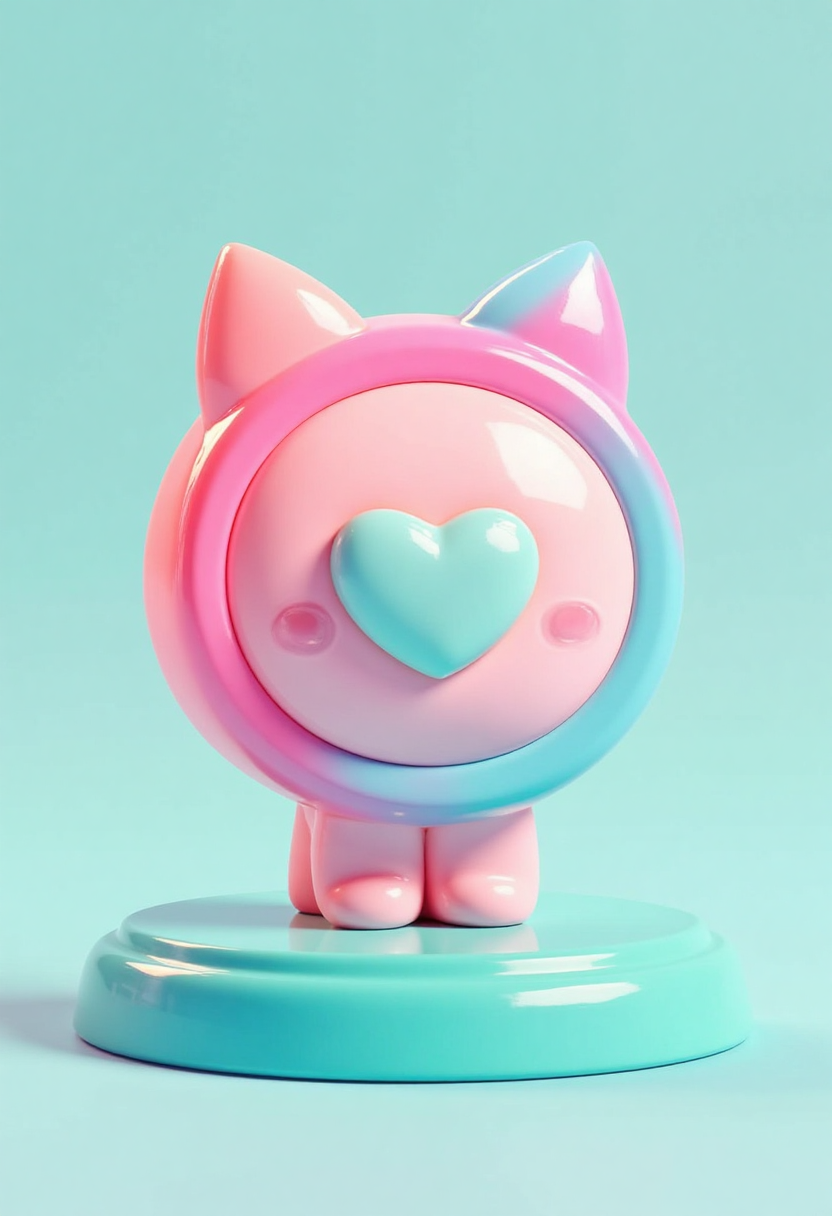 7. 可爱的糖果主题3D图标,霓虹色边缘,奇趣动物造型,放置在青绿色底座上,带有糖果爱心眼睛。