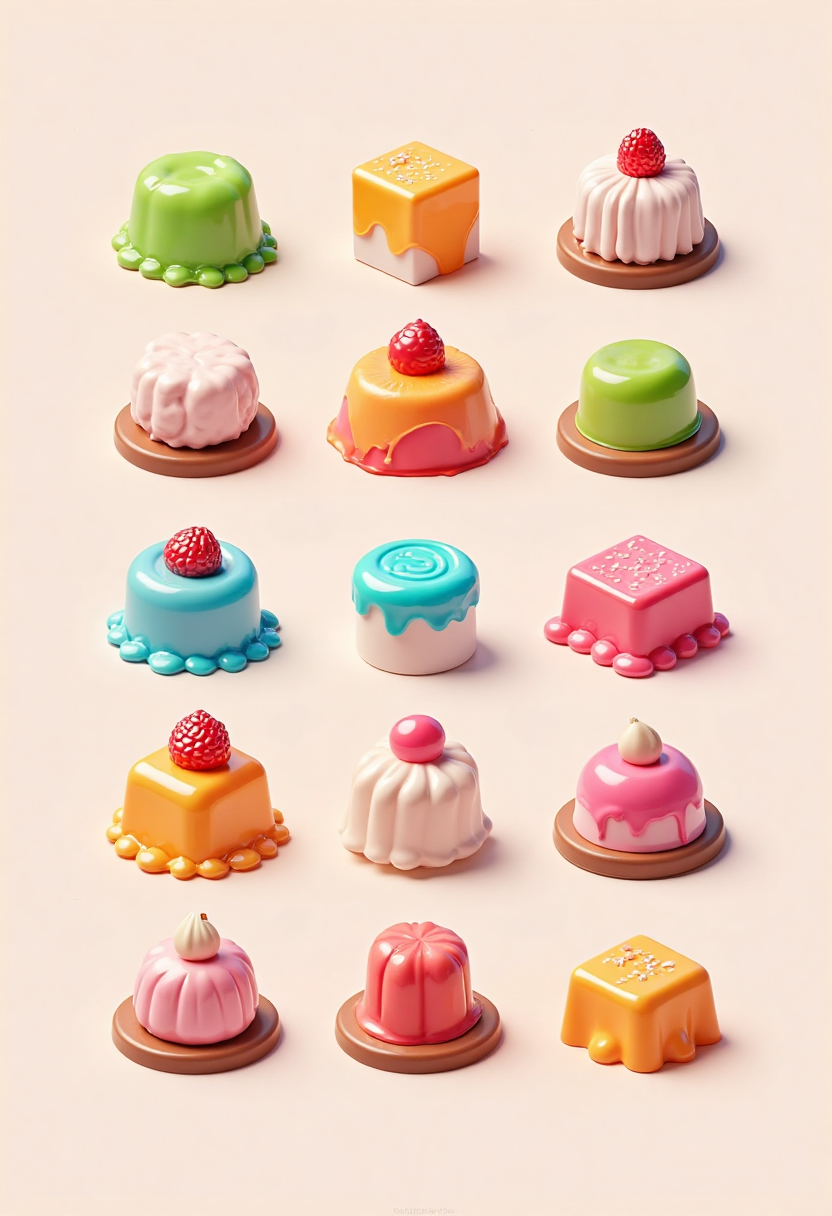 • 该 LoRA 模型专注于生成可爱的糖果主题 3D 图标,能够呈现丰富多彩的色调与多样化的形状,并具有精致生动的细节。