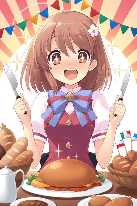붉은 기미, :d, + +, 흥분한, 행복한, 시선을 보는 사람에게 향함, 입 벌림, 반짝임, 반짝이는 눈, 별 모양 동공, 기호 모양 동공