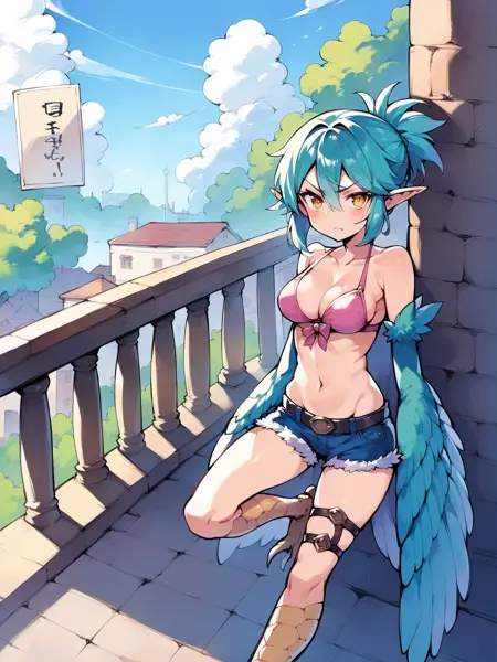harpy, winged arms, monster girl, feathered wings, feathers, talons, bird legs