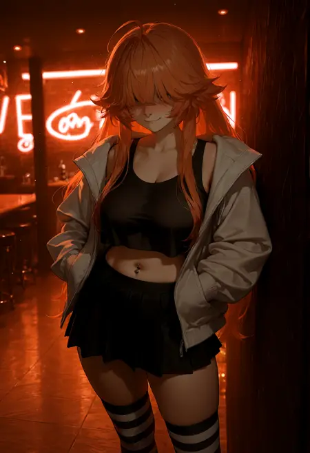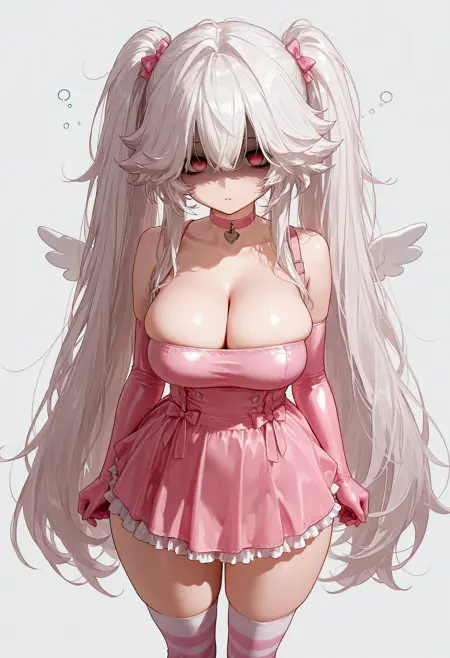 layered hair, voluminous hair, layered hime-cut hybrid with twin tails, long hair, ahoge, bangs, hair over eyes, hair covering eyes, big hair, sidelocks,