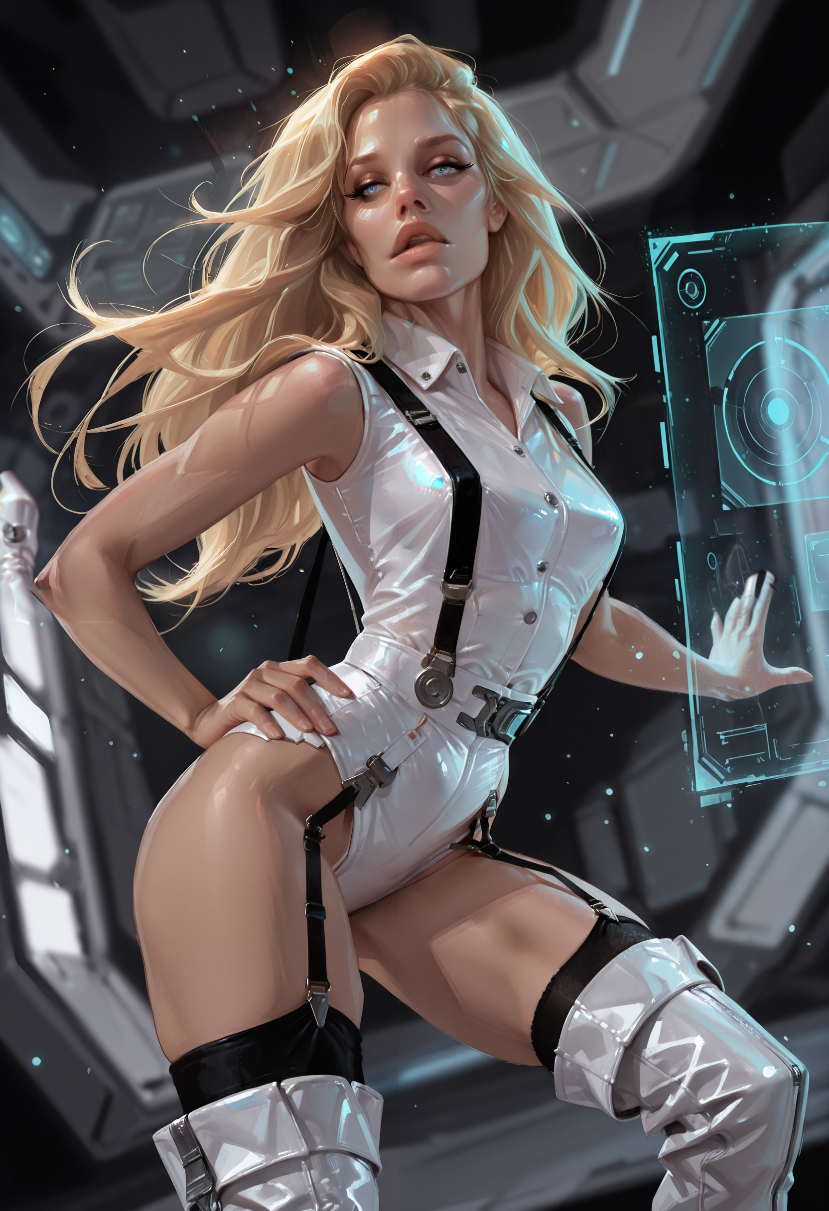 | Trained Words | b4rb4r3lla, 1girl, blonde hair, long hair, blue eyesCopied! b4rb4r3lla, 1girl, blonde hair, updo, blue eyesCopied! silver sequins top, see-through bodysuit, silver sequins belt, black panties, silver sequins cape, ankle boots, silver bootsCopied! transparent breastplate, transparent pauldrons, black leotard, pantyhose, ankle boots, brown bootsCopied! dress, green sequins short dress, ankle boots, green footwearCopied! white collared leotard, sleeveless, garter straps, black straps, suspenders, boots, thigh boots, white footwear, high heelsCopied! leotard, black sequins leotard, breast cutout, one breast out, nipple, stomach cutout, belt, tan panties, pantyhose, polka dot cape, ankle boots, tan bootsCopied! white bodysuit, chainmail, short cape, red panties, red footwear, ankle bootsCopied! sleeveless skunk like fur coat, fur tail, white fur, large tail, ankle boots, silver bootsCopied! |