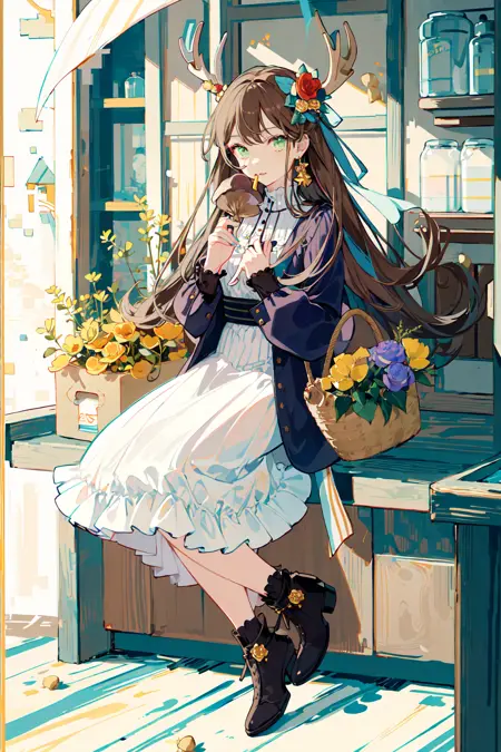 구성 요소가 풍부하지만, 색조는 저포화도와 저대비 조합으로 전체적인 스타일을 신선하고 우아하게 만들며, 달콤한 느낌을 줍니다. 의상 조합도 다양하여 선크림 드레스, 어깨끈 치마, 넓은 다리 바지, 레이디스 스타일, 로리타 스타일 등 모두 생성 가능합니다. 그래서 저는 이 모델을 '스위트 걸'이라고 이름 지었습니다.