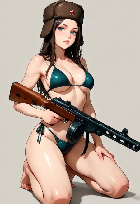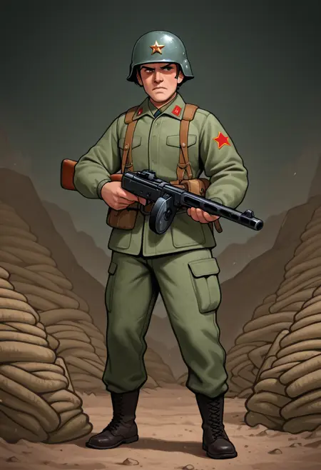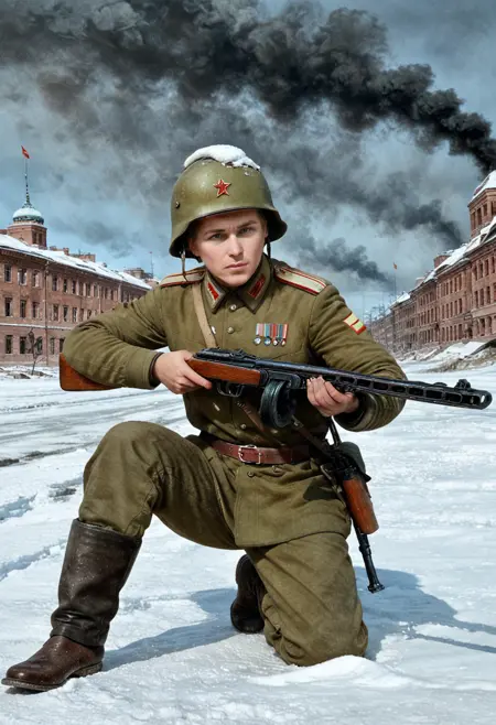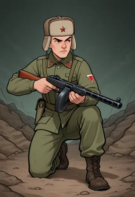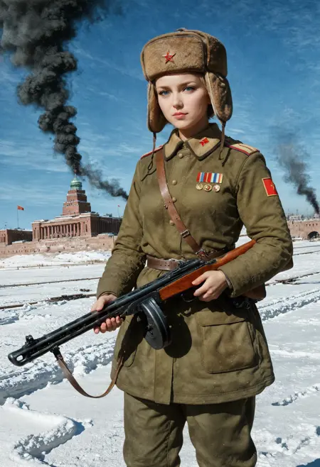 The lora is ok'ish currently, I used a very smol dataset, I'm going to try to find more reference. In my wildest dreams I'd love to make a general soviet army lora, with uniforms, more weapons and other stuff. I already tagged The SSH40 helmet on this set and soviet uniforms, I think it doesn't create amazing soviet helmets but it helps fight the insane bias toward Stahlhelm you can find in SD (and bias toward producing nazi uniforms in general...).