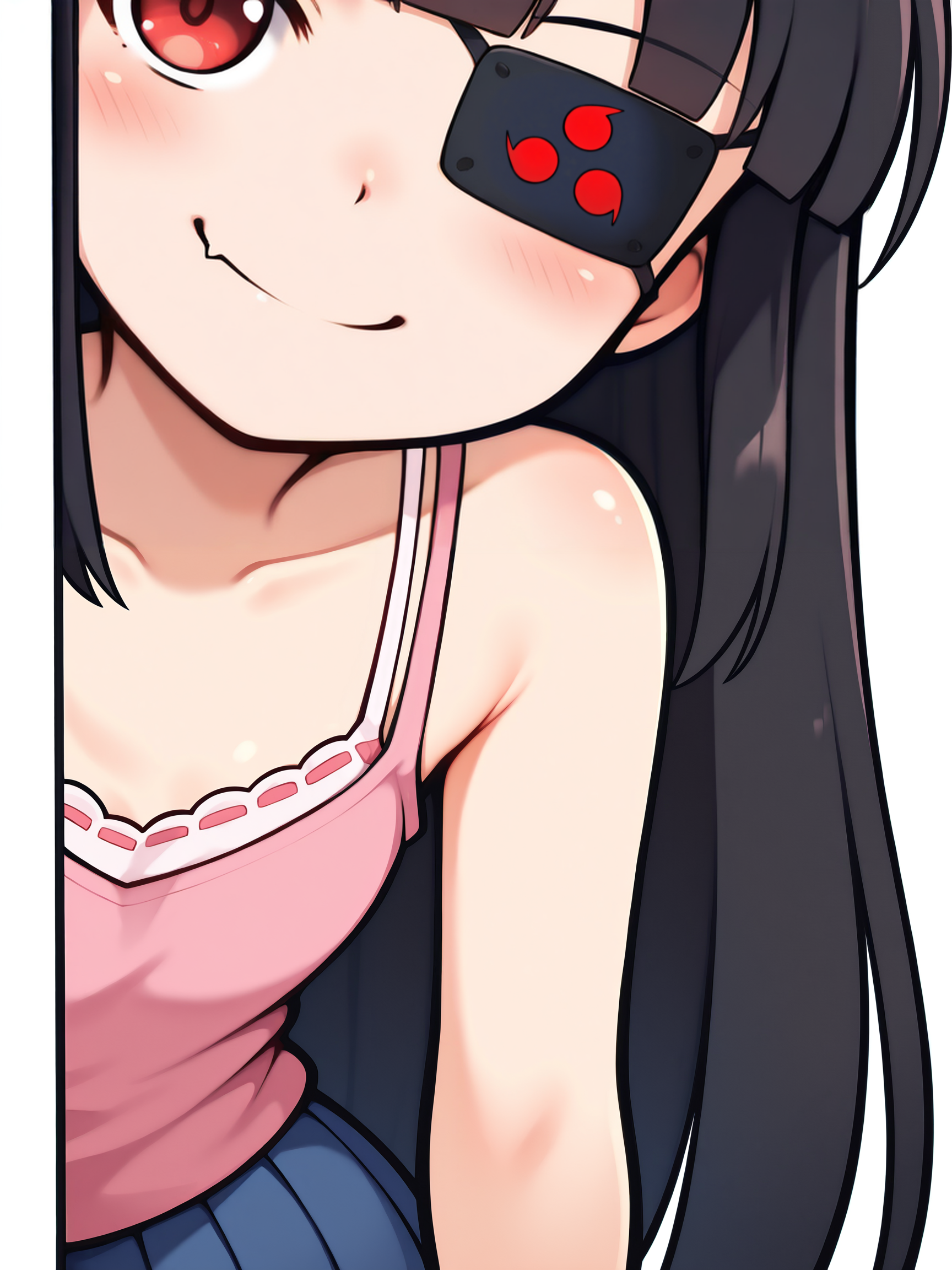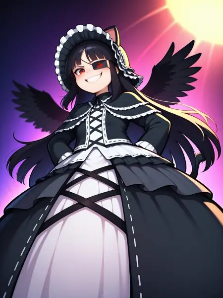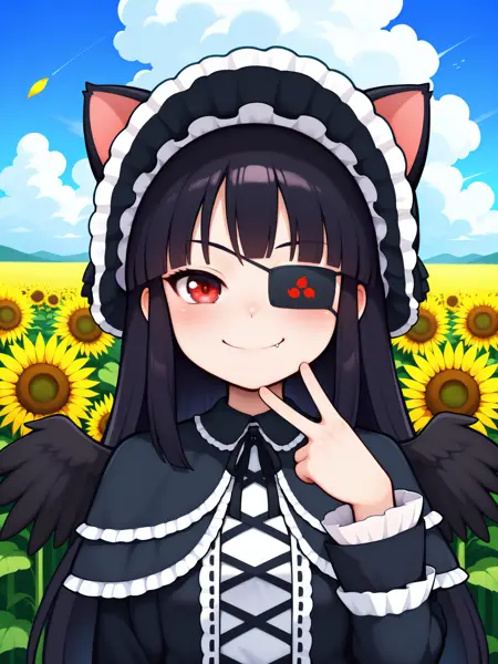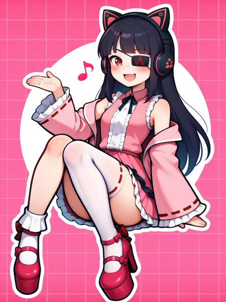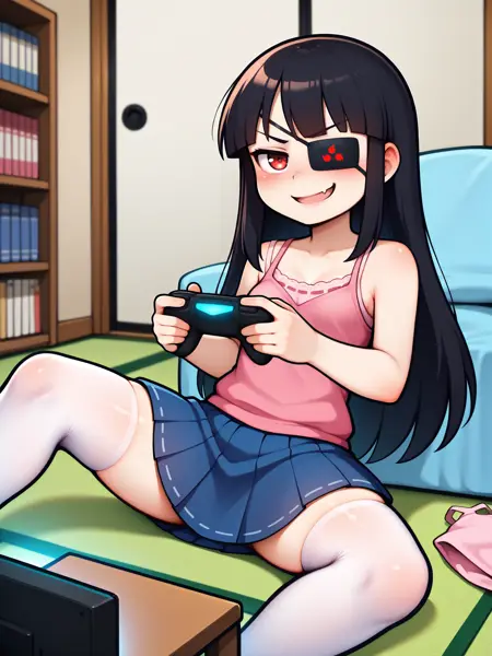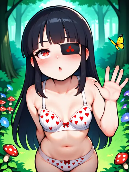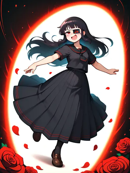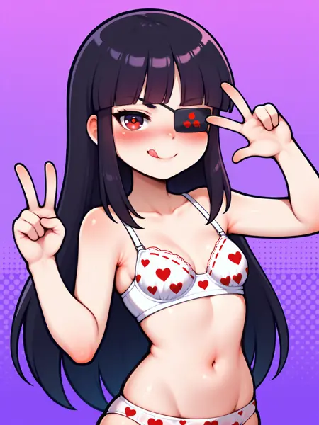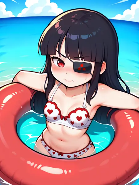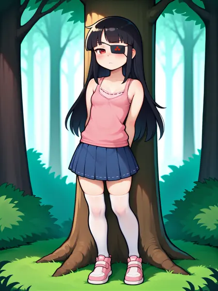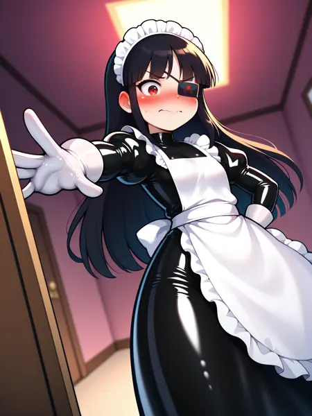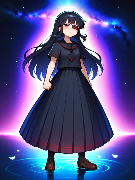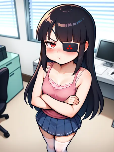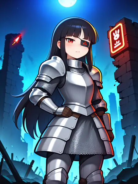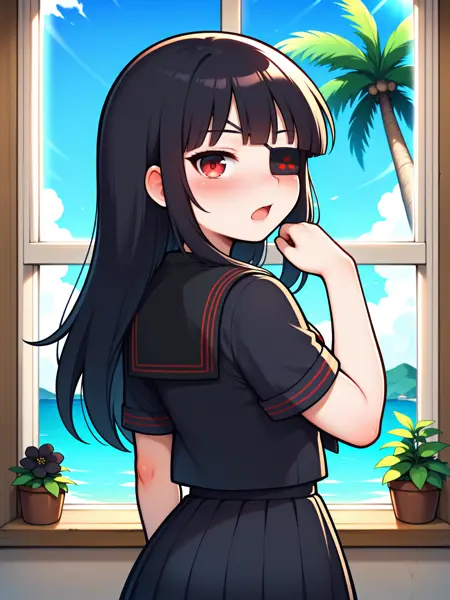 LoRA 的触发词为:"Mirai_IL, 长黑发, 眼罩, 红眼, 小乳房"。