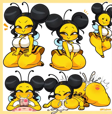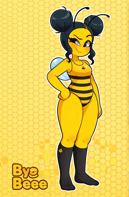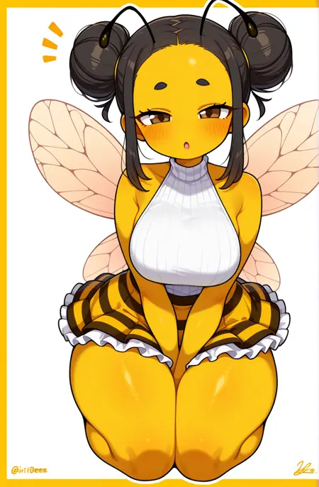 bennybee, black hair, brown eyes, sidelocks, wings, hair bun, double bun, yellow colored skin