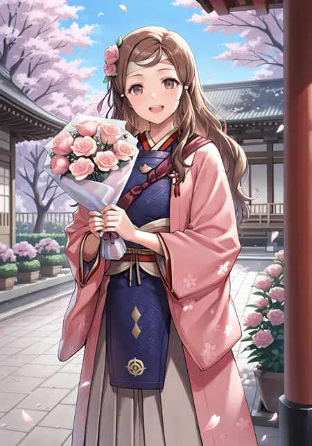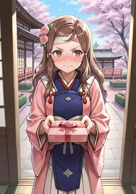 バレンタイン:HanaVAL、髪の花、ヘッドバンド、日本の衣装、着物、帯、袴スカート、骨盤カーテン、花、青い靴下、サンダル、剣