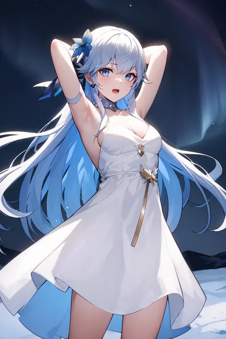 To prompt this character, enter "lora:SelenaPGR:strengthselenapgr, white dress, mechanical collar, black footwear, two-tone long hair, detached sleeve, bandaged arm, mechanical arm, hair ornament, chest flower, holding white flute, thigh strap,". Her black dress Final coating appearance can be prompted with "lora:SelenaPGR:strengthselenapgr, black dress, mechanical collar, black footwear, two-tone long hair, detached sleeve, mechanical arm, bandaged arm, hair ornament, pantyhose, thigh strap,".
