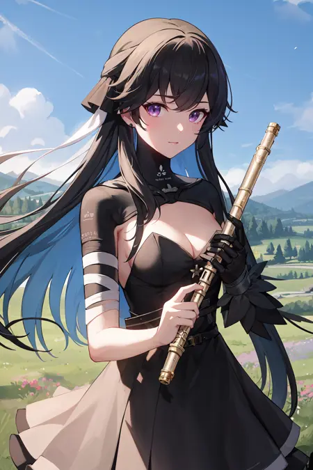 输入“holding X color flute,”或“playing X color flute,”将尝试生成她手持或演奏长笛的场景,但由于SD在识别和生成手持对象时的机制,效果可能参差不齐。