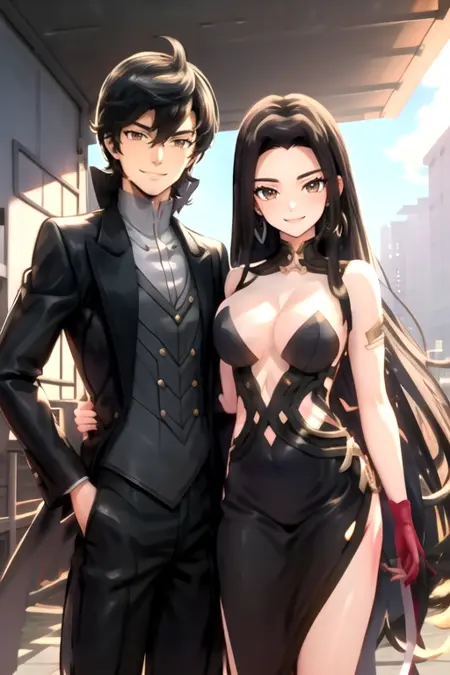RenMirage, a man and a woman, hetero, standing, smile, cowboy shot