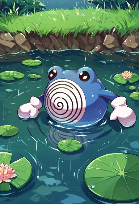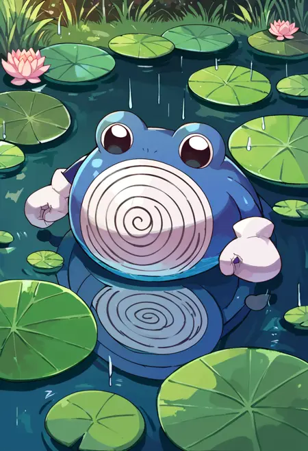 poli_whirl,solo,no humans,pokemon (creature),black eyes,white gloves,blue skin,