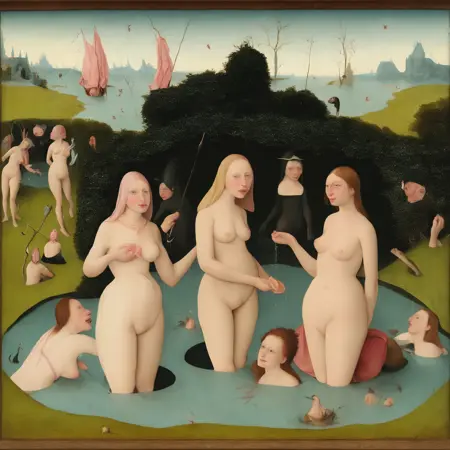 히에로니무스 보스(1450년경 제로니무스 반 아켄 태어남 – 1516년 8월 9일 사망)는 브라반트 출신의 네덜란드/네덜란드화 화가입니다. 그는 초기 네덜란드 회화 학파의 가장 두드러진 대표자 중 한 명입니다. 그의 작품은 일반적으로 참나무 판에 유화로 그려졌으며, 주로 종교적 개념과 서사를 환상적으로 묘사합니다. 생전에 그의 작품은 네덜란드, 오스트리아, 스페인에서 수집되었고, 특히 지옥의 공포스럽고 악몽 같은 장면들이 널리 복제되었습니다.