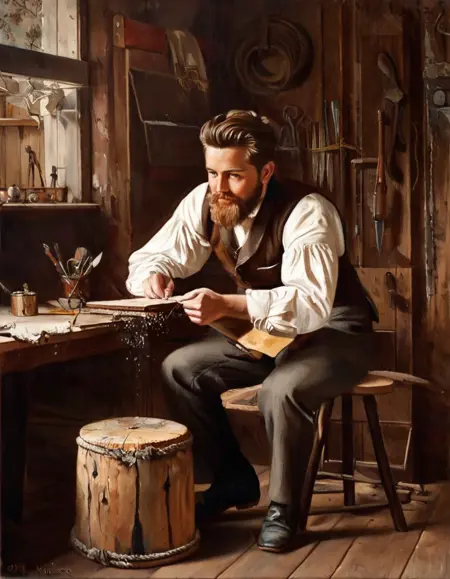 이 LoRA는 미국 장르 화가 토머스 워터먼 우드의 스타일에 특화되었습니다. 그는 19세기 미국의 세밀하고 감정적인 장면으로 유명하며, 특히 내전 기간 및 전쟁 이후 아프리카계 미국인 병사들의 경험을 탐구한 삼폭화 『전쟁의 한 조각: 불법 전리품, 모병자, 그리고 퇴역군인』이 가장 유명합니다.