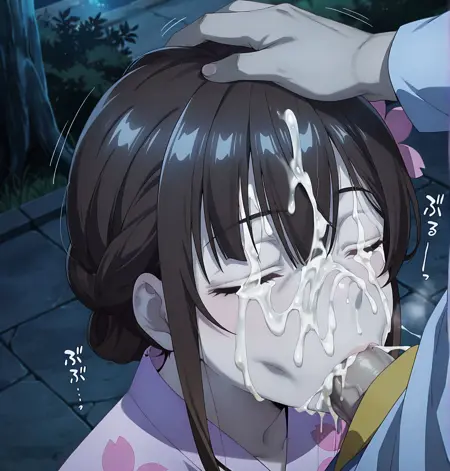 1girl, facial, penis, projectile cum, teary eyed, eye grab,handjob,
