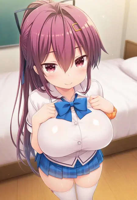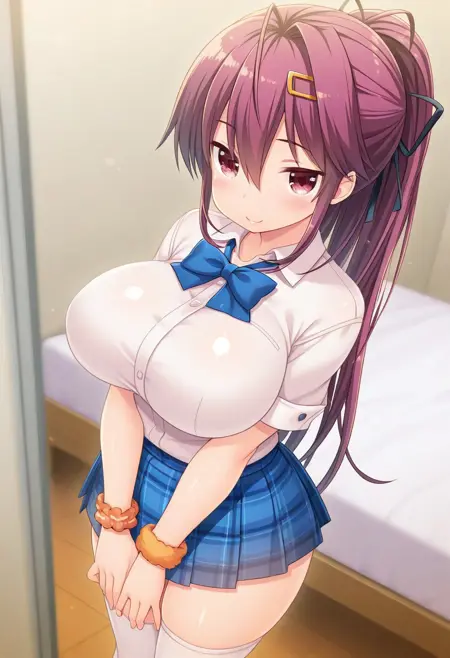 권장 프롬프트: Hikaru Takanashi, purple eyes, purple hair, long hair, long ponytail, hair ribbon, hairclips,