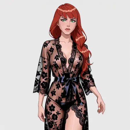 • 触发词:BlackWidowEMH, 1girl, 黑色紧身衣, 长发, 绿眼睛, 腰带, 红发, 黑色手套, 牛仔镜头
