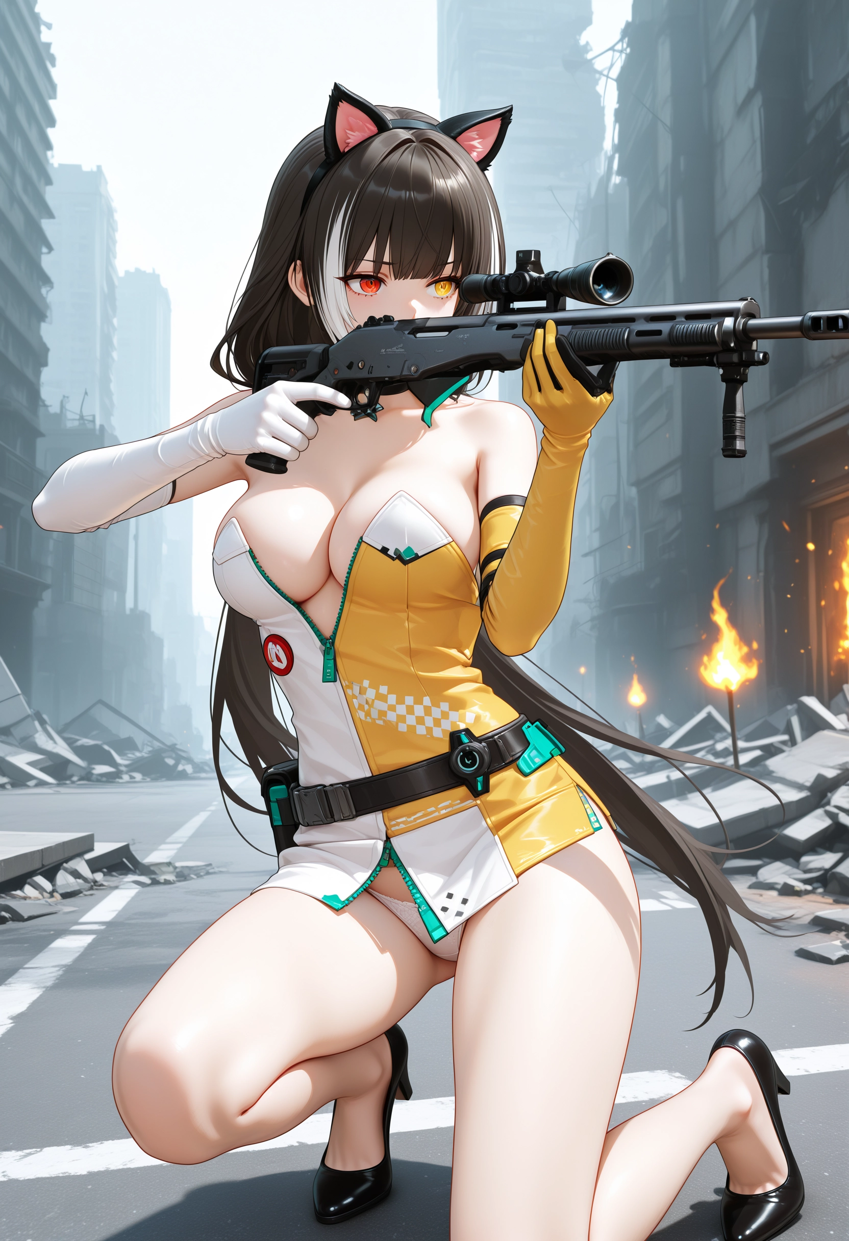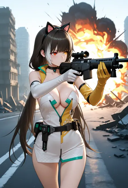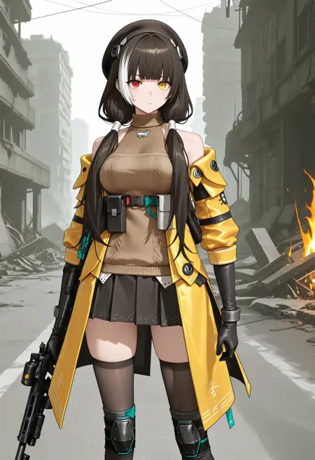 | 학습된 단어 | ro635/(gfl/), heterochromia, streaked hair, suit1, cleavage, elbow gloves, fake animal ears, strapless, alternate costume, rifle, white breast patch, asymmetrical gloves, white glove, yellow glove, elbow gloves, belt, choker, zipper, black high heels,복사됨! ro635/(gfl/), heterochromia, streaked hair,suit2, knee pads, yellow jacket,  black thighhighs, brown sweater vest, beret, black gloves, black skirt,복사됨! |