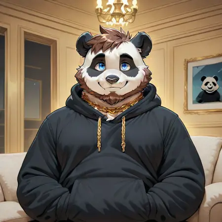Rhy(character), male, panda, anthro, furry, brown hair, blue eyes, beard, short hair, Chubby,