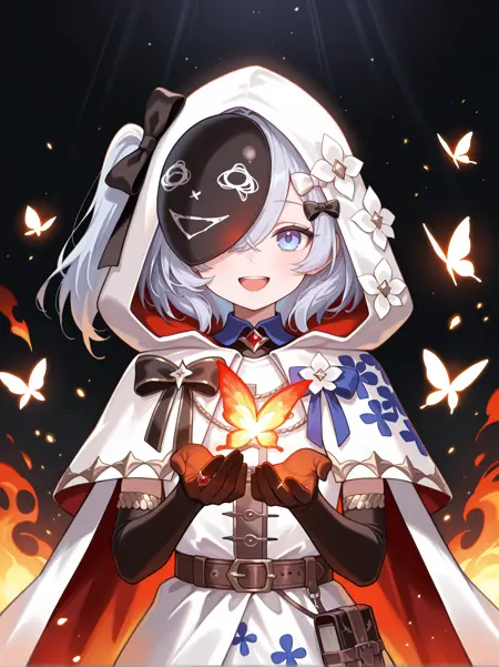 标签(其他):黑色面具,书本,燃烧,蝴蝶(白色/蓝色),发光蝴蝶,手持面具,面具戴在头上,替代服装,