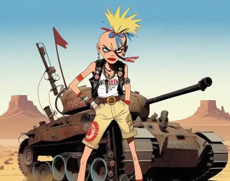 Tank Girl is a British comic created by Alan Martin and Jamie Hewlett. Trained 93 source images from the comic and film.